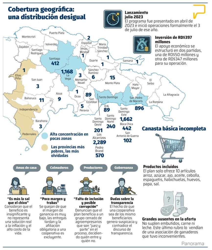 La productora de arroz Elida Núñez duda del alcance territorial y del impacto en la población, que proclaman las autoridades. Señala que no ofrecen datos sobre la cantidad de barrios que han tocado y que son escuetos al solo limitarse a citar los nombres de las provincias en los que han afiliado colmados, sin especificar municipios, salvo los del Gran Santo Domingo.