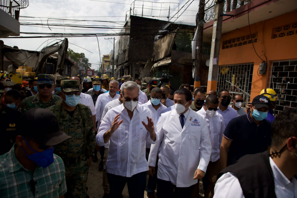 El presidente Luis Abinader recorrió este martes las zonas afectadas tras la ocurrencia de una explosión en esta provincia, donde aseguró que todas las familias recibirán un apoyo el gobierno para volver a la normalidad.