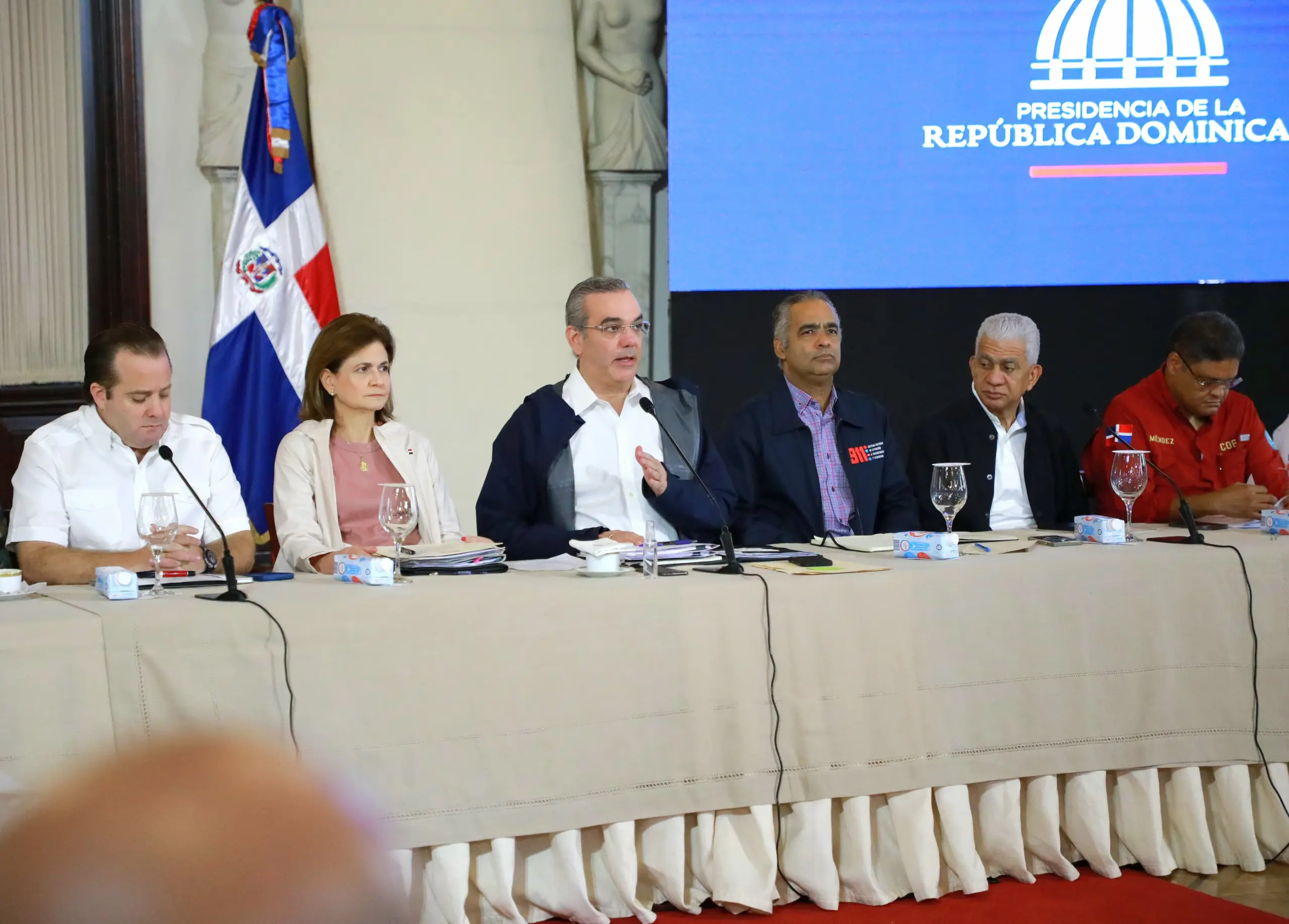 Santo Domingo. – El presidente Luis Abinader informó este domingo a la ciudadanía que todo el gobierno está incorporado en la solución de los problemas a raíz de este disturbio tropical, el cual, junto a la directora de ONAMET, Gloria Ceballos, calificó como “extremo, sin precedentes en la cantidad de lluvia en nuestro país”.