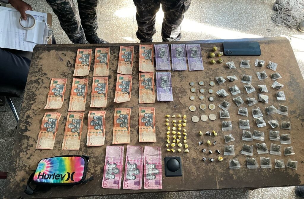 El detenido es Brailin Modesto Ubiera, alias El Campesino, residente en el sector Villa Verde, quien durante la intervención, se le ocupó una cartera tipo canguro que contenía 49 porciones de marihuana, 36 de crack y otras 12 porciones adicionales de marihuana.