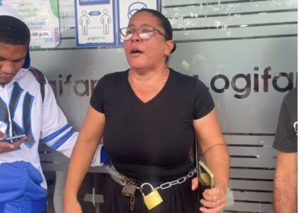 Madre se encadena a la puerta de una ARS para exigir tratamiento para su bebé