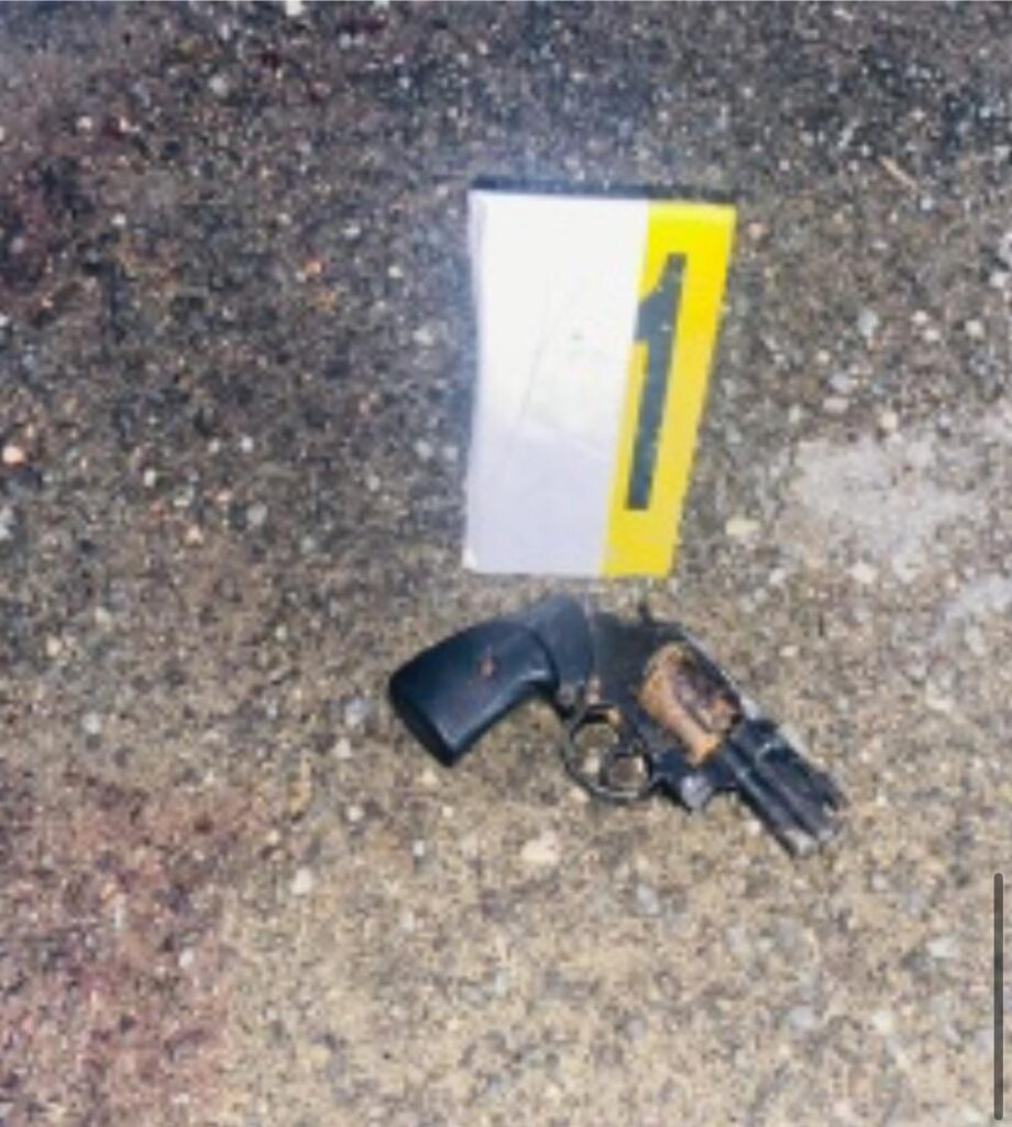 En la escena, el técnico de la Policía Científica colectó como evidencia un revólver de marca y numeración no legibles, dos cápsulas calibre 38, una cizalla, un saco con mercancías y dinero pertenecientes al establecimiento.