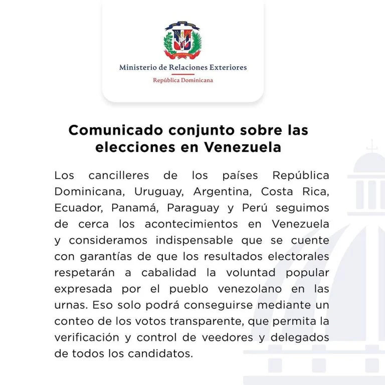 A través de un comunicado, el Ministerio de Relaciones Exteriores (Mirex) aseguró que los cancilleres de otros países de Latinoamérica como Uruguay, Argentina, Perú, Costa Rica, Panamá y Ecuador también siguen de cerca las incidencias de los sufragios.
