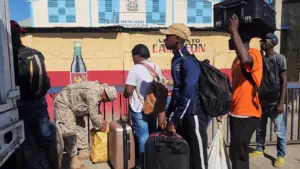 Los Extranjeros, cruzan el puente fronterizo, a bordo de distintos medios de transporte haitianos y a pie, acompañados de sus maletas así como distintos ajuares del hogar, para llegar a la ciudad de Juana Méndez y otras ciudades del vecino país.