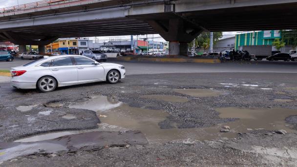 Panorama Nacional. -. La intersección de la autopista Duarte con la avenida Los Beisbolistas en Manoguayabo, en el tramo donde se construye la línea 2-C del Metro de Santo Domingo, se encuentra en condiciones deplorables debido al daño en el pavimento causado por aguas cloacales y residuales provenientes de viviendas y negocios. Esta situación ha generado grandes atascos de tráfico, especialmente en la dirección sur-norte.