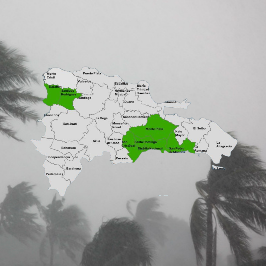 El organismo indica que debido a se esperan aguaceros moderados a fuertes con tormentas eléctricas y ráfagas de viento, especialmente al interior del país y en otras localidades se espera la ocurrencia de chubascos locales, tronadas aisladas y posibles ráfagas de viento, la provincia Santo Domingo, el Distrito nacional, San Pedro de Macorís, Monte Plata, San Cristóbal, Santiago Rodríguez y Dajabón, se declaran en alerta.