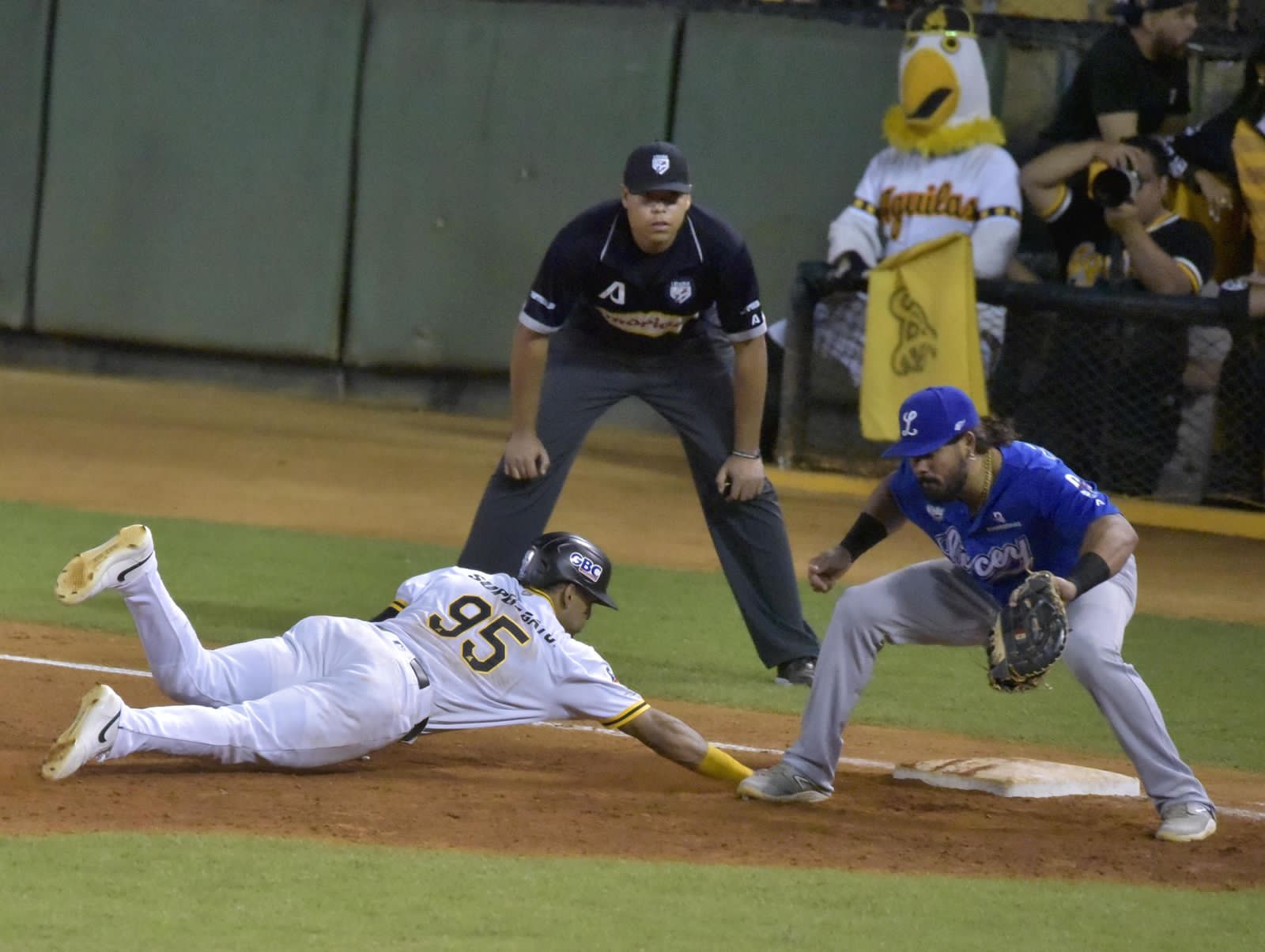 El Licey salió delante con dos carreras en la primera entrada frente al abridor de las Águilas, Teddy Stankiewicz. Emilio Bonifacio inició con doble al prado derecho, Johan Rojas se ponchó, pero Miguel Andújar dio sencillo remolcador al central y entró en carrera por doblete al jardín izquierdo de Jorge Alfaro.