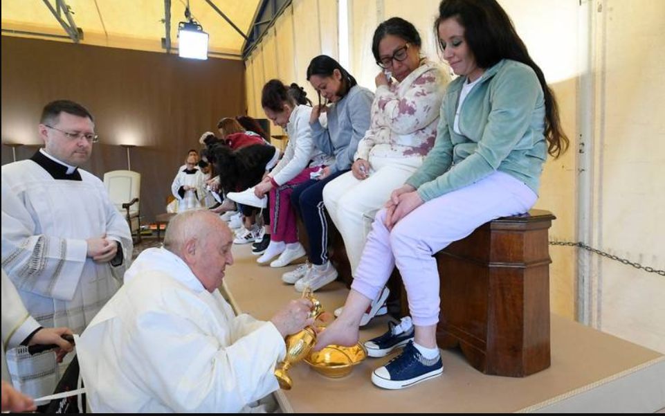 Panorama internacional. El papa Francisco celebró este Jueves Santo en la prisión femenina de Rebibbia en Roma, a donde acudió para presidir la misa de la última cena y lavar los pies a doce reclusas como Jesús a sus discípulos, un gesto que cumplió desde su silla de ruedas, emocionando a las mujeres.