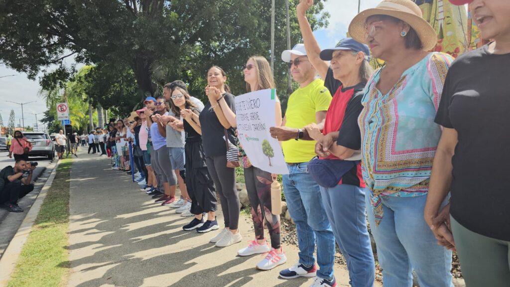Panorama Nacional. – El cineasta José María Cabral encabezó este domingo una cadena humana en los alrededores del Jardín Botánico Nacional, en rechazo a la propuesta de eliminar una porción de este espacio verde para ampliar la avenida República de Colombia.