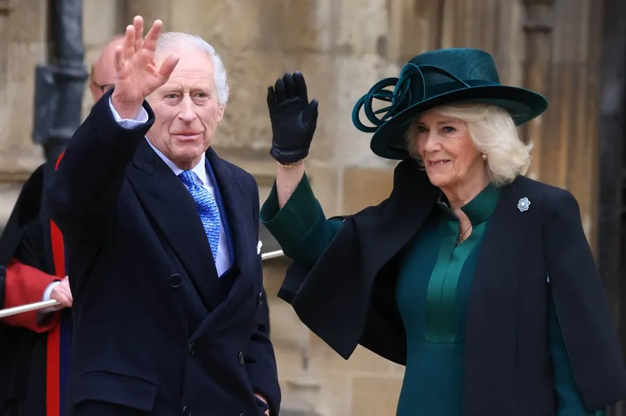 En su aparición de este domingo, Carlos III se mostró sonriente y con aspecto tranquilo al saludar a la gente que se había congregado desde horas antes para ver a la comitiva real.