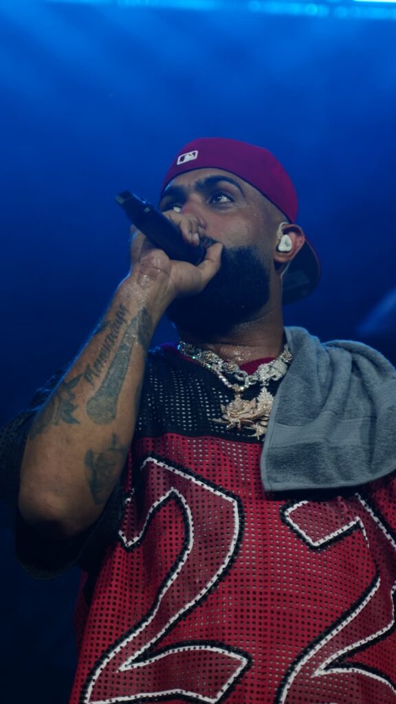 El carismático boricua salió al escenario a las 9:15 de la noche entre ovaciones, preguntando con entusiasmo: “¿Cuántos vinieron a trapiar conmigo hoy?”, y prometió un recorrido por su repertorio completo: canciones viejas, nuevas y hasta «súper nuevas». Y así fue.