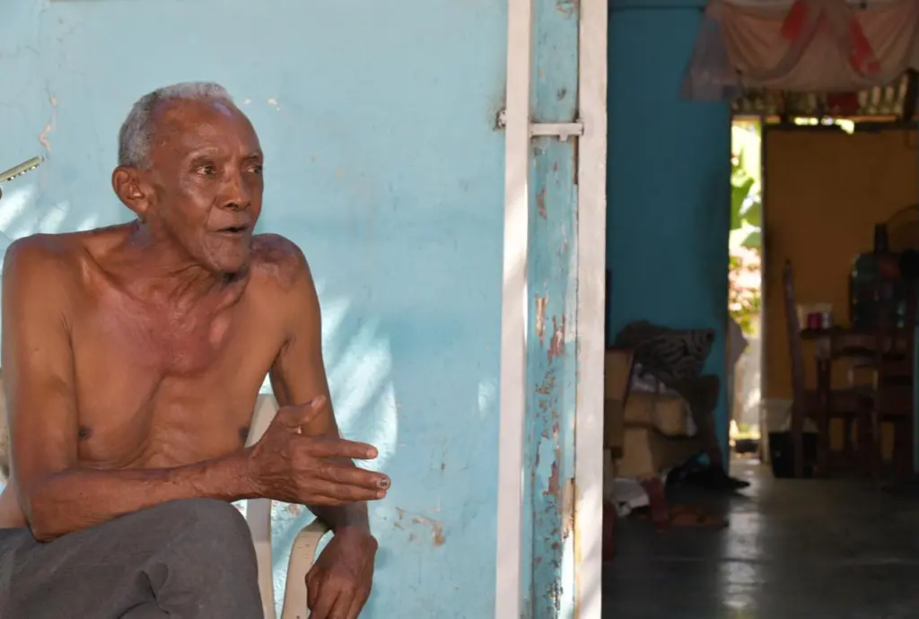 En la misma línea, un señor mayor, sin camisa, sentado frente a su casita de madera tomaba aire puro. Le preguntamos su nombre, y sonriente contestó: Saturnino Ramón Roa.