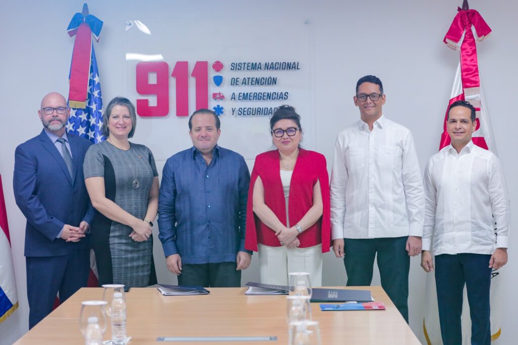 El acto de firma estuvo encabezado por el ministro de la Presidencia y presidente del Consejo del Sistema 911, José Ignacio Paliza; la encargada de Negocios de la Embajada de los EE. UU., Patricia Aguilera; y el director ejecutivo del 911, coronel piloto, Randolfo Rijo Gómez, ERD.