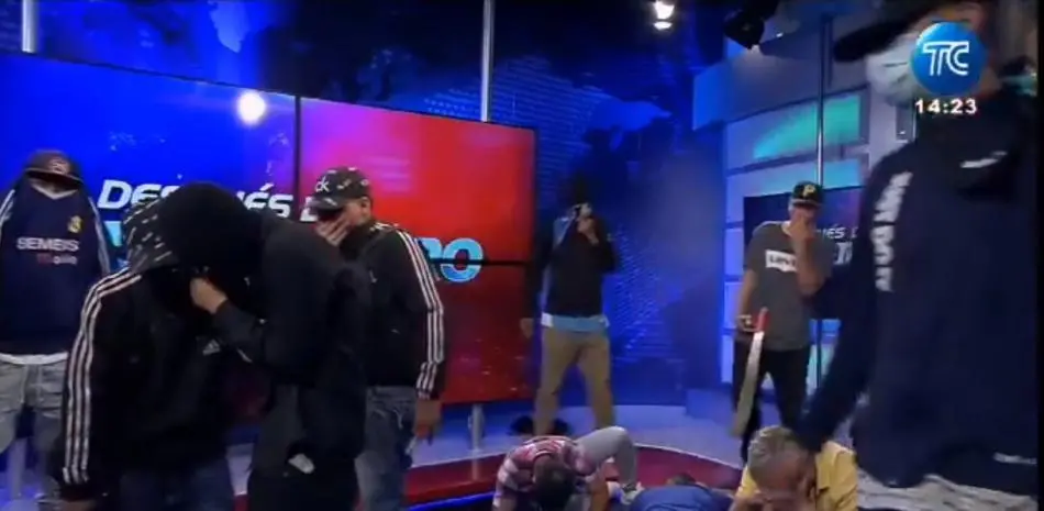 Encapuchados armados ingresaron este martes en el canal de televisión TC, en la ciudad de Guayaquil en el suroeste de Ecuador, y sometieron a su personal durante una transmisión en vivo.