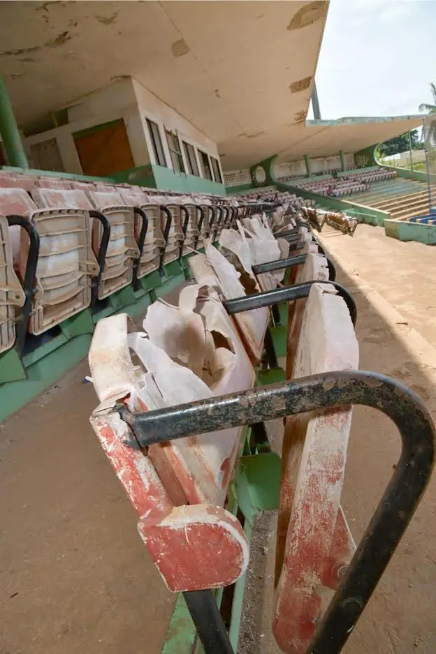 Nadie se atreve a remozar el estadio, y la última vez fue una mano de pintura verde, hace más de 10 años y que en algún lugar podría quedar una pulgada de pared como testigo de que una vez se limpió el lugar.