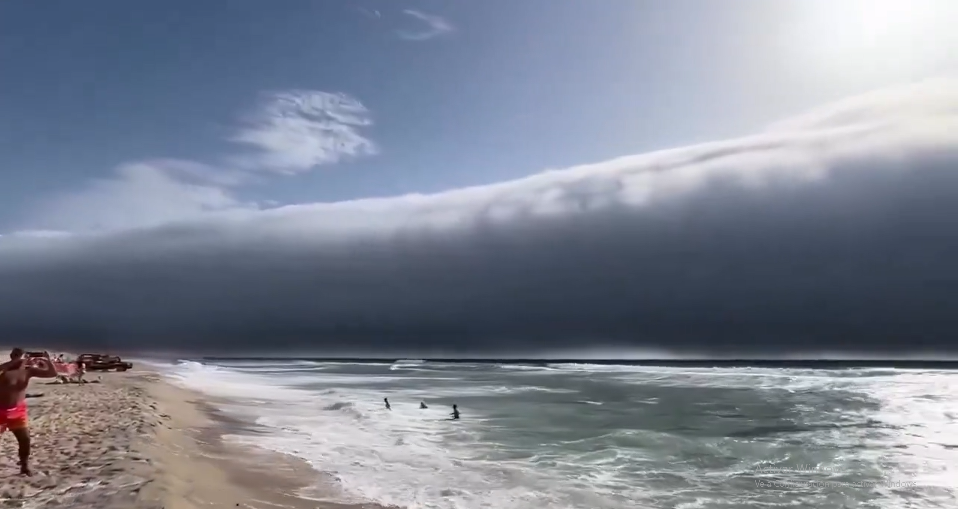 El impresionante fenómeno, parece una gran ola que avanza desde el mar hacia la costa, lo que hizo pensar a los bañistas que se trataba de un tsunami, provocando que salieran apresurados del agua.