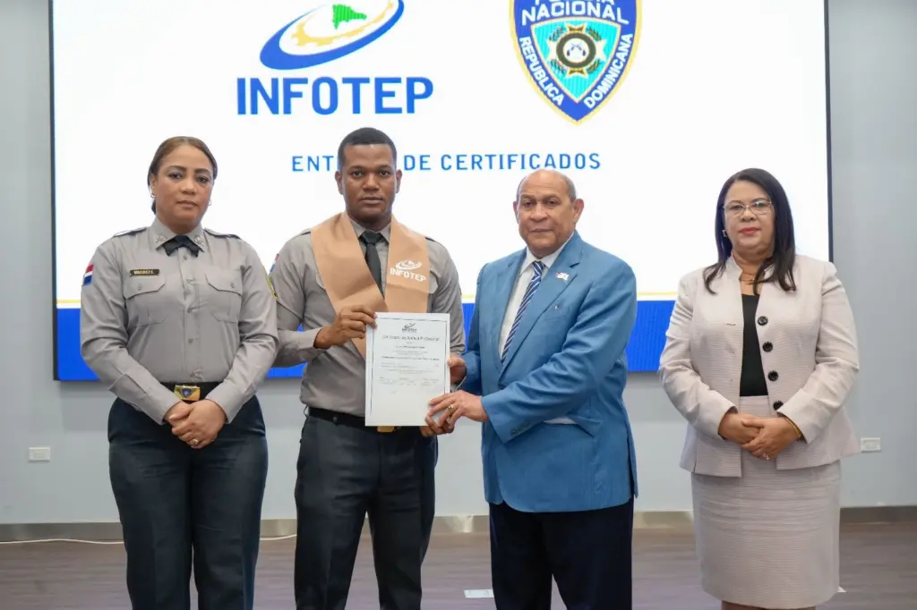 El director general del INFOTEP, Rafael Santos Badía, destacó que esta entrega de certificado es resultado de un acuerdo firmado por esa institución con la Policía Nacional, con el objetivo de obtener una mayor profesionalización y capacidad de servicio de sus miembros, a la ciudadanía.