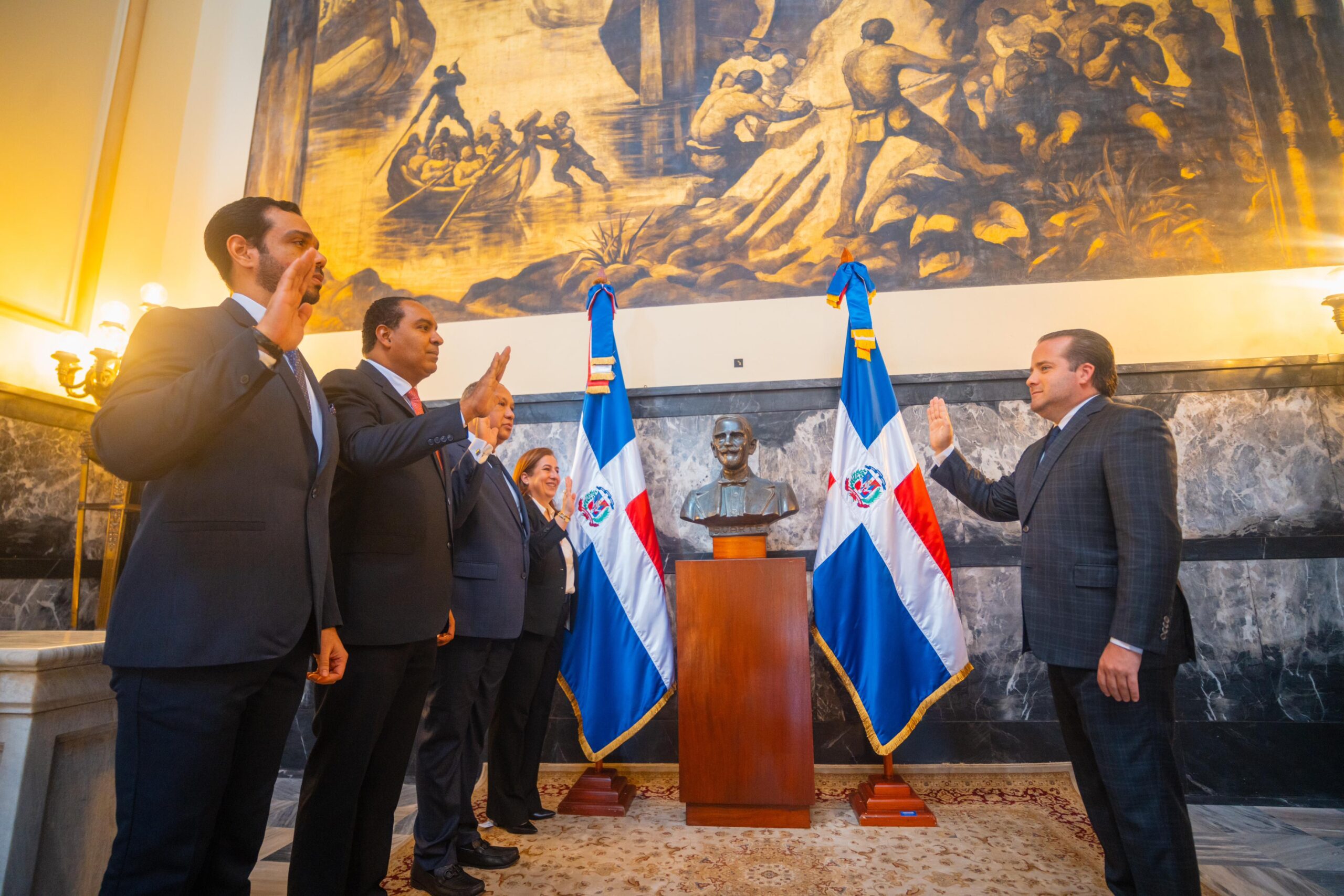 Panorama Gobierno.- El ministro de la Presidencia, José Ignacio Paliza, juramentó a los nuevos viceministros de esta institución María del Pilar Cañas López, quien asume como viceministra de Relaciones Institucionales; Alexis Isaac Jiménez González, como viceministro de Desarrollo Social; Edgar de Jesús Batista Carrasco, quien ocupará el Viceministerio de Agenda Digital; y Roger Pujols, viceministro de Proyectos Especiales, designados por el presidente Luis Abinader.