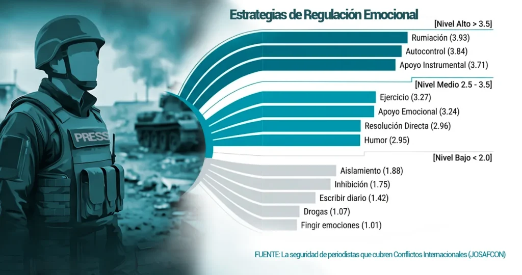 El informe ‘Caracterización y condiciones de seguridad de periodistas españoles que cubren conflictos internacionales’, enmarcado en el proyecto ‘Journalist Safety Research Project’, elaborado por la Universidad del País Vasco, arroja cifras significativas: más de la mitad de los periodistas españoles en guerra presentan sintomatología de estrés postraumático y tres de cada diez han recibido diagnóstico-