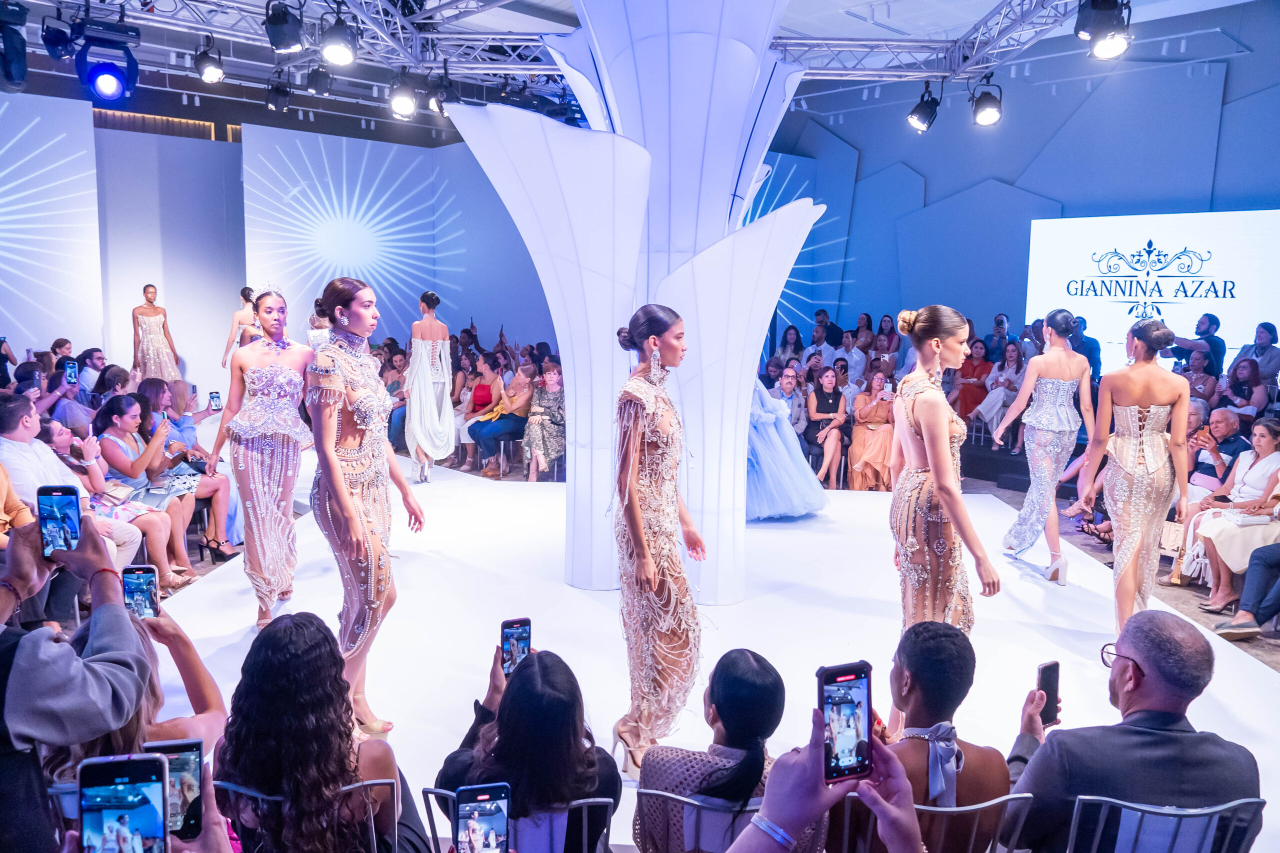 La pasarela brilló con la apertura de la maestra Giannina Azar, seguida de una constelación de talentos como Gabriela Azar, Eclíptica, José Raúl, Leonardo Fifth Avenue, José Jhan, Laura García Bridal, The White Dress, La Novea, Fancy Sinner, Manuel Febrillet, Rafael Rivero, Arcadio Díaz, Melkis Díaz, Wilson Alcéquiez y Joel Reyes, entre otros. Cada colección ofreció un universo distinto: desde las novias etéreas con encajes y perlas hasta los novios modernos con trajes frescos y colores audaces.