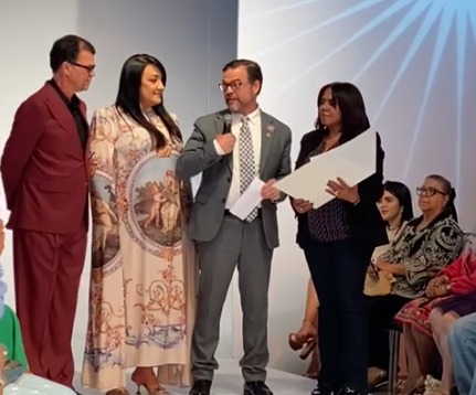Panorama Estilo.- La apertura del RD Bridal Week 2025 estuvo cargada de emociones y brillo cuando el senador de Nueva York, Luis Sepúlveda, entregó un reconocimiento especial a los diseñadores Giannina Azar y Sócrates McKinney, exaltando su trayectoria y el orgullo que representan para la diáspora dominicana.