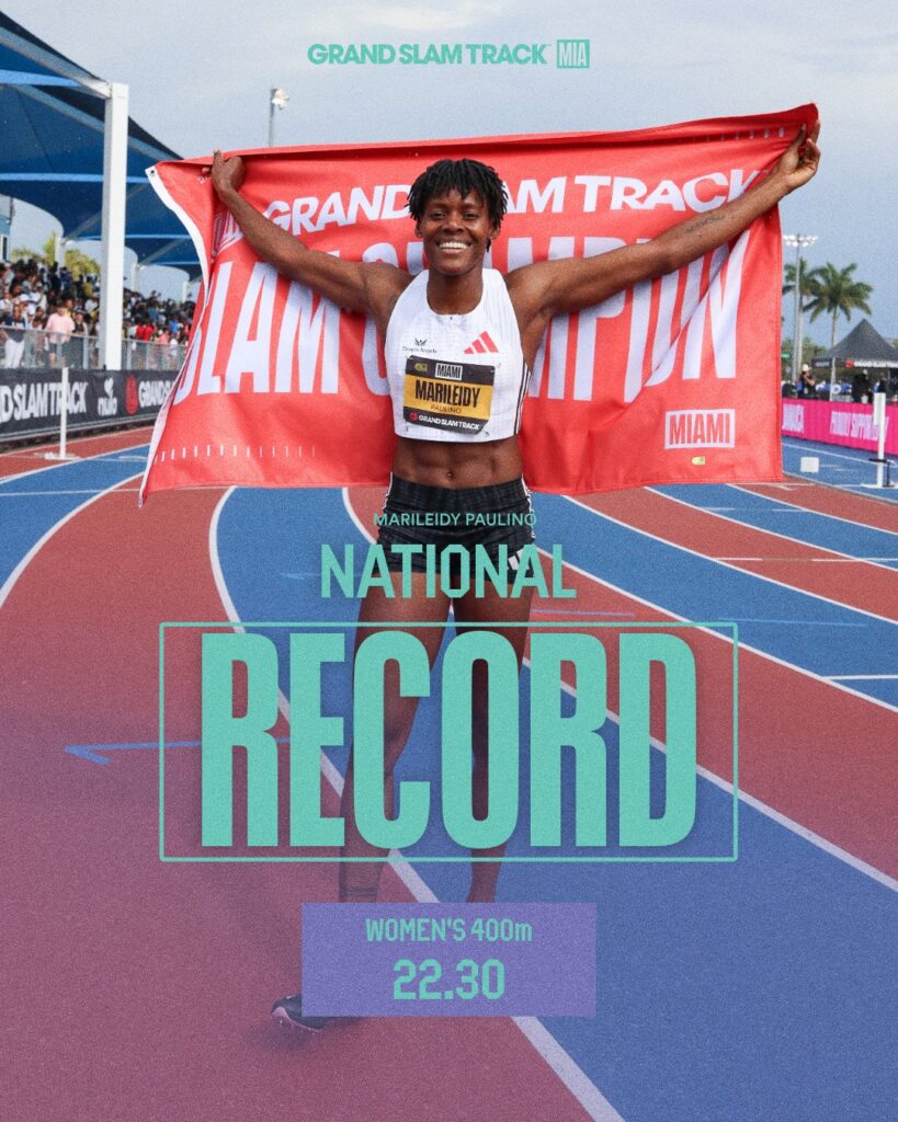 Panorama Deportivo.- La campeona olímpica y tricampeona de la Liga de Nacionales, la dominicana Marileidy Paulino, logró este domingo “un doblete de oro” en el Grand Slam Track, Miami 2025, tras conquistar el primer lugar en la modalidad de los 200 metros al parar el reloj a los 22:30.