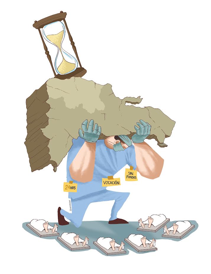 “Los médicos los tengo regados en tres lugares diferentes, incluyendo esta oficina: uno en la base, otro en otra”, explica.