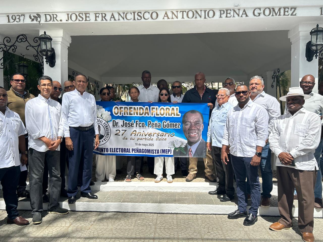 Santo Domingo, DN.- Con motivo del 27 aniversario del fallecimiento del líder político José Francisco Peña Gómez, el Movimiento Electoral Peñagomista (MEP), encabezado por su presidente Rafael (Fiquito) Vásquez, rindió homenaje al destacado dirigente con una ofrenda floral en su tumba en el Cementerio Cristo Redentor.