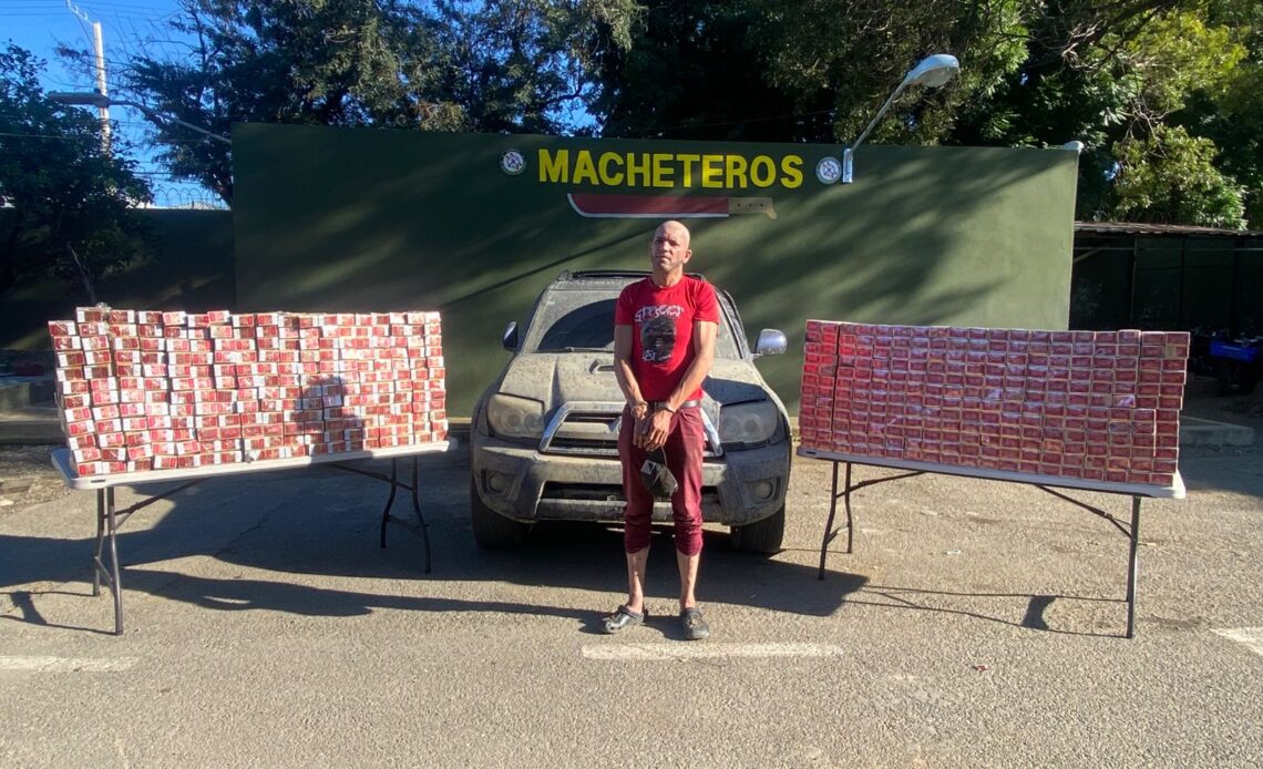 Panorama Nacional. Soldados del Ejército, asignados al Destacamento Hatillo Palma, detuvieron a un ciudadano en el distrito municipal Cerro de Jaibón, municipio Laguna Salada, provincia Valverde, con un cargamento de cigarrillos ilegales.