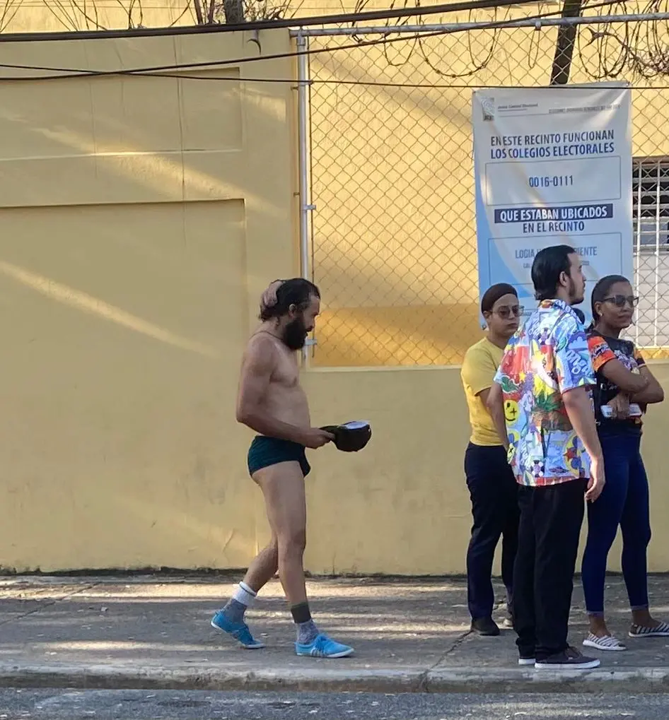 Panorama Electoral. – A propósito de las flexibilidades que concedió la Junta Central Electoral (JCE) para que las personas asistan a ejercer su voto a los diferentes colegios electorales, un ciudadano llegó a sufragar en ropa interior a la escuela Hermanos Trejo, en Higüey.