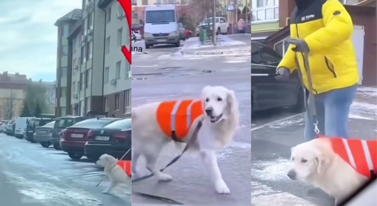 Sin moverse hasta que su fiel compañero regresara, el hombre ciego confió en la guía de su perro para cruzar la calle de manera segura.