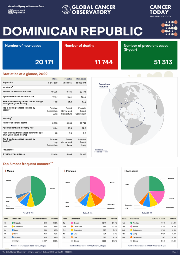 La República Dominicana tiene un plan nacional de cáncer, específicamente, el Plan Estratégico Nacional de Cáncer Infantil 2023-2030. Este plan, impulsado por el Ministerio de Salud Pública (MIP) y con apoyo de la Organización Panamericana de la Salud (OPS), busca reducir la mortalidad por cáncer infantil, mejorar la atención de calidad y aumentar la conciencia sobre la enfermedad. Además, el país ha implementado otros programas, como el de Detección Oportuna de Cáncer para mama, cérvicouterino y próstata.