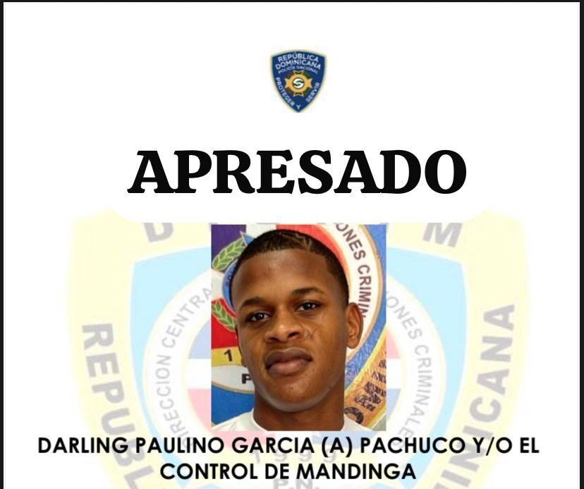 Panorama Nacional. La Policía Nacional informa que fue apresado mediante un amplio operativo realizado en la ciudad de Santiago, Darling Paulino García, alias “Pachuco” y/o “El Control de Mandinga”, un reconocido delincuente que se encontraba prófugo de la justicia y que figura en el sistema como presunto autor de múltiples hechos delictivos, incluyendo agresiones con armas de fuego.