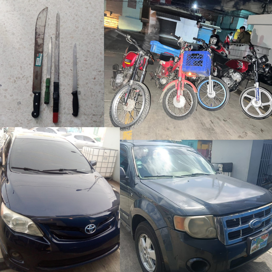 Panorama Nacional. Agentes policiales de Sabana Perdida, ejecutaron una serie de operativos preventivos en distintos barrios de Santo Domingo Norte, resultando en la recuperación de dos vehículos robados, la ocupación de motocicletas y armas punzantes, así como la detención de varias personas para fines de investigación.