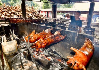 En Navidad asaderos contratan hombres adicionales para preparar el famoso “cerdo en puya”
