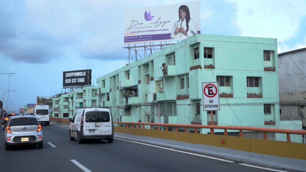 En Santo Domingo hay pantallas colocadas en puentes peatonales y aceras, sobre edificios, en solares privados y en zonas residenciales. Las vallas publicitarias no solo invaden las calles, sino también los edificios. Cubren fachadas enteras, bloqueando la entrada de luz natural y transformando hogares y oficinas en lugares oscuros y opresivos.