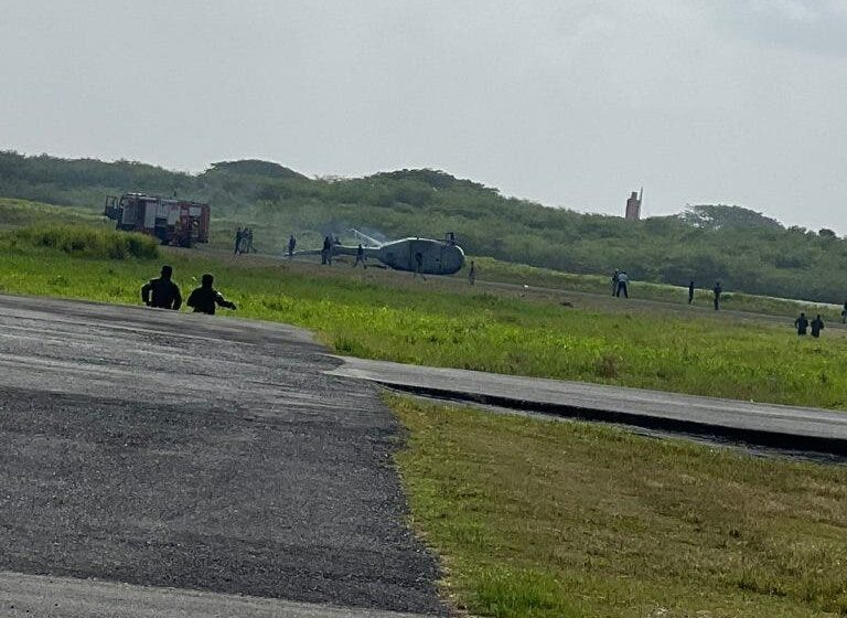 Un helicóptero de la Fuerza Aérea de la República Dominicana (FAD) se precipitó este viernes en la Base Aérea de San Isidro cuando iba a aterrizar, sin que sus dos ocupantes sufrieran lesiones.