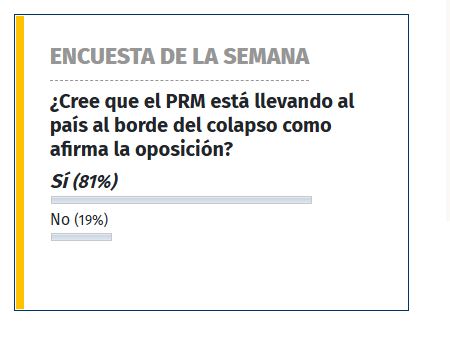 Los resultados fueron los siguientes: el 81% de los votantes consideró que sí, que el gobierno del PRM es responsable, mientras que el 19% opinó lo contrario.
