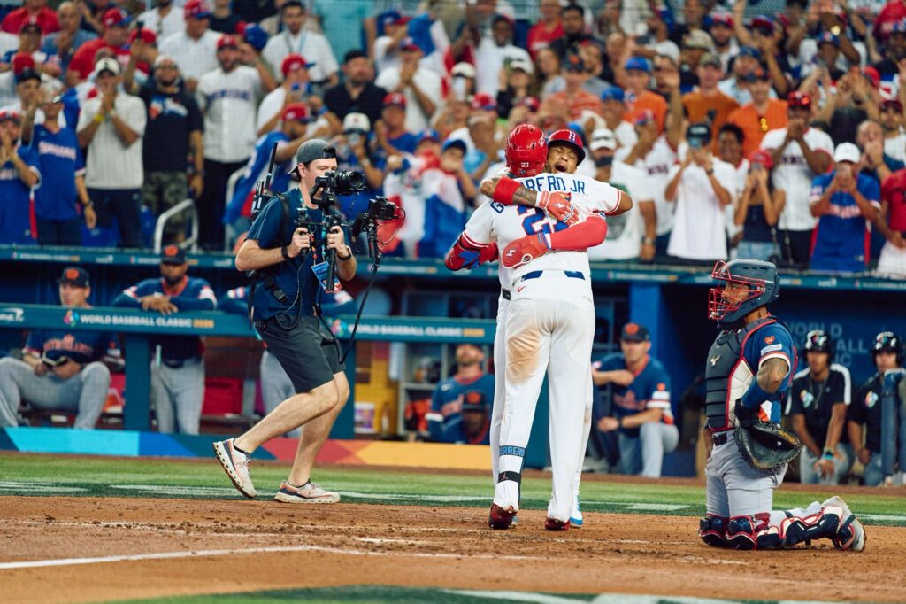 El jonrón de dos carreras de Vladimir Guerrero Jr. en la tercera entrada dio a los dominicanos un respiro temprano, mientras que Junior Caminero y Austin Wells continuaron la fiesta de poder con jonrones en una quinta entrada de seis carreras que abrió el juego.