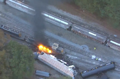 Video – Tren que contenía 4,000 galones de diésel se descarrila y provoca incendio