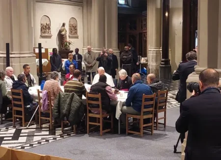 El papa desayuna con personas sin hogar y migrantes en Bélgica