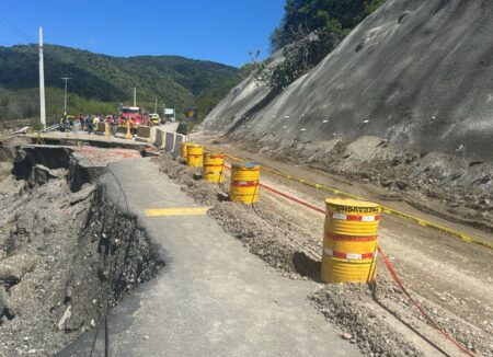 Cierran tránsito en kilómetro 7 de la carretera Ocoa por trabajos