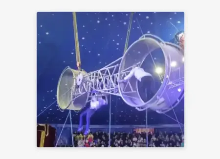 Acróbata cae desde la rueda de la muerte en un circo ruso