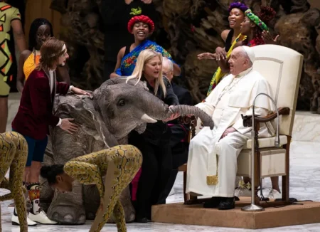 Dos elefantes robóticos y un circo con temática africana, protagonistas en la audiencia general del papa