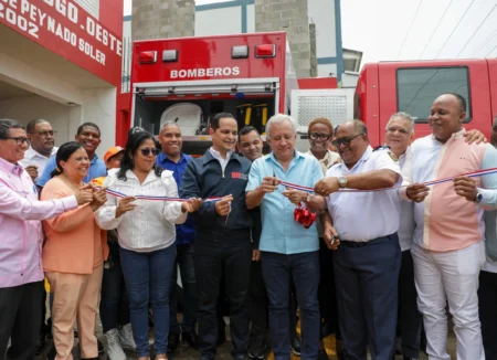 911 entrega nuevo camión al Cuerpo de Bomberos de SDO