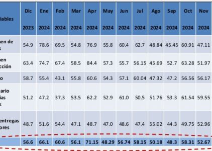 Índice Mensual de Actividad Manufacturera se coloca en 55.18 en el mes de diciembre 2024