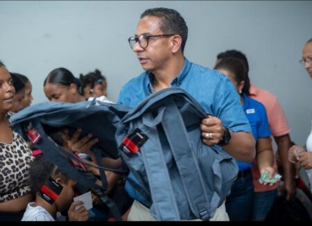 Pedro Jiménez entrega útiles escolares a niños del Distrito Nacional