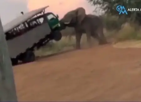 Un Elefante ataca camión de turistas en Sudáfrica