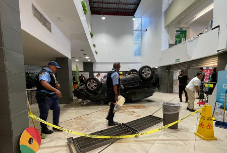 Reportan un herido tras vehículo caer del segundo piso de un supermercado