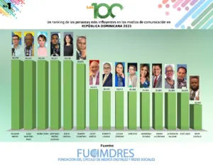 La Fundación del Círculo de Medios Digitales y Redes Sociales (FUCIMDRES) presentó el ranking de las 100 personas más influyentes en los medios de comunicación en República Dominicana durante el año 2023.